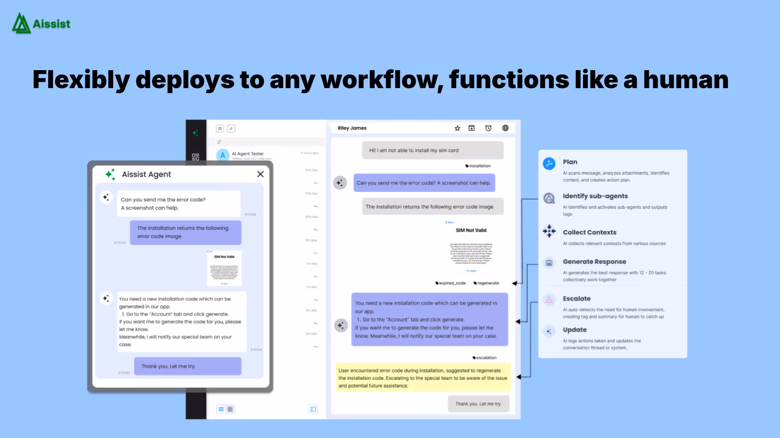 What sets Aissist.io apart is its Multi-Agent engine that excels in complex scenarios and multi-tasks across tagging, responding, summarizing, updating, and more. With flexible deployment into existing workflows and a cost-effective model, Aissist.io outperforms other solutions on every front.