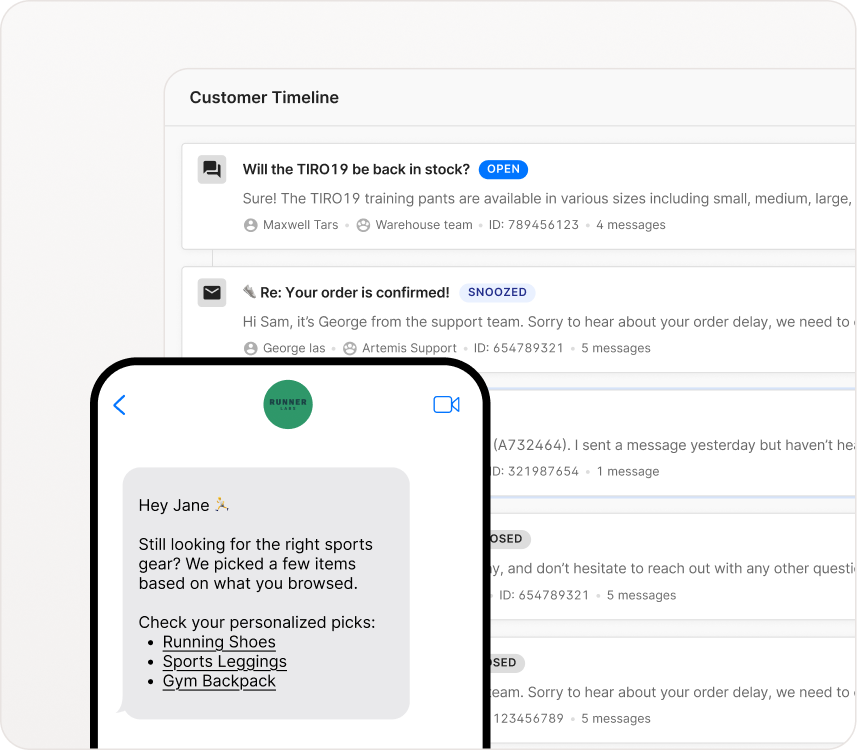 One unified inbox across every channel, with live Shopify data and full customer context built into every conversation.
