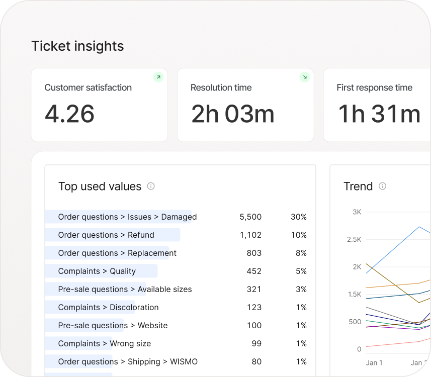 Lower support costs, reduce manual workload and lift revenue with a platform designed for ecommerce teams.
