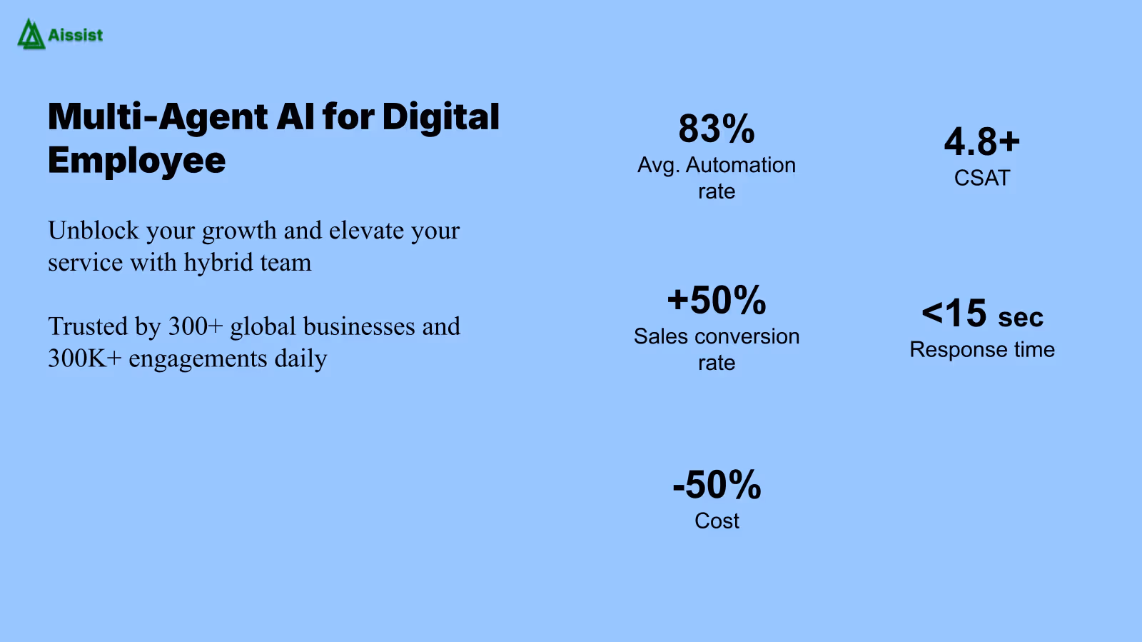 Aissist.io helps you unblock growth and scale effortlessly by augmenting your team with Digital Employees — AI agents that plug seamlessly into your workflows and function like humans.