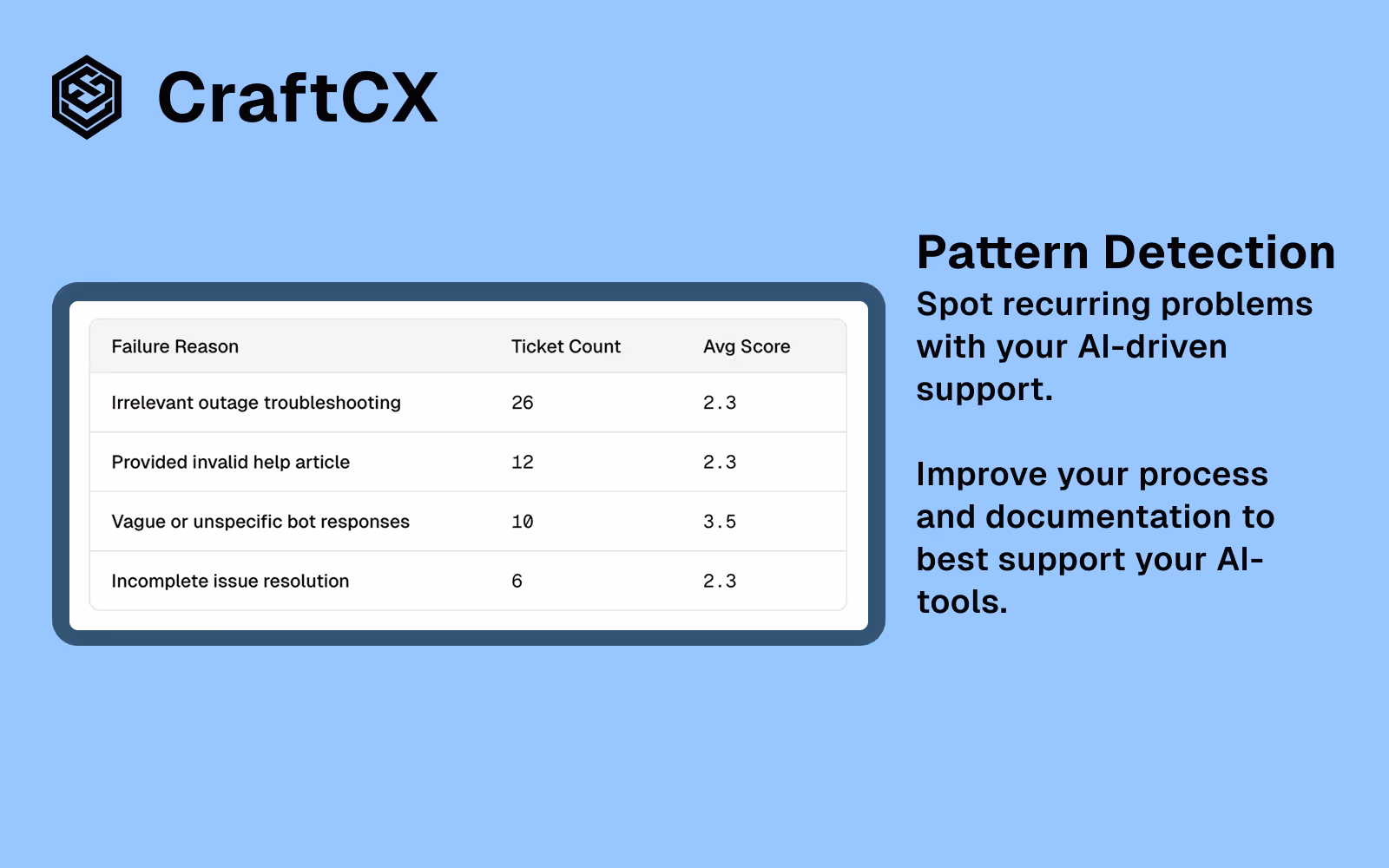 Deflection is great, but did the customer really get what they needed, or just drop off? CraftCX delivers clear insights on how your AI-agent performs.