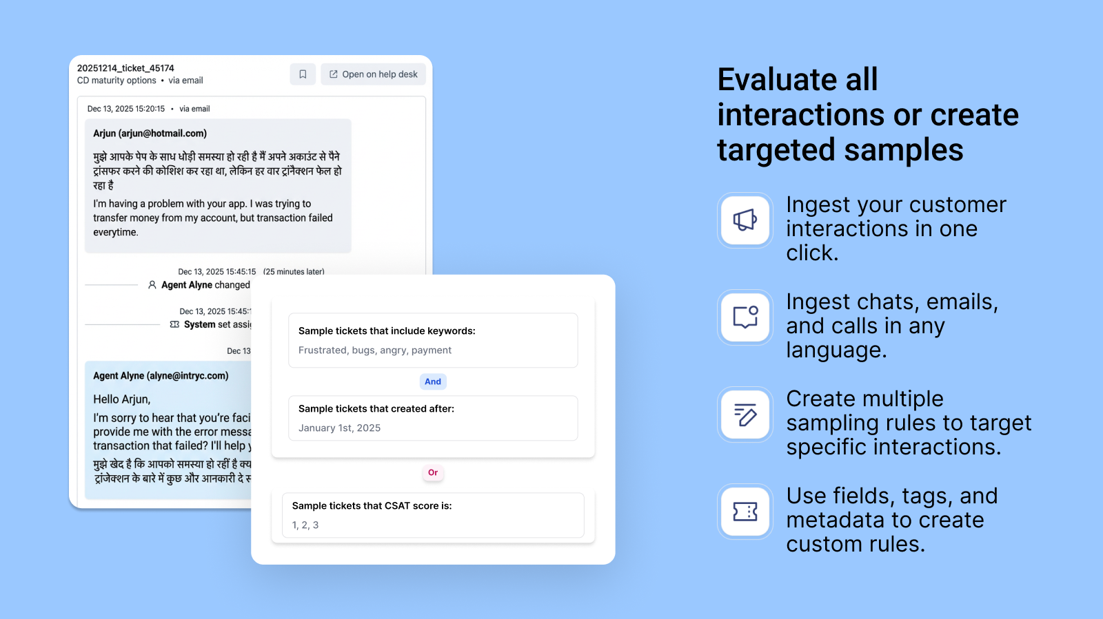 Intryc supports comprehansive review, dispute, calibration, coaching and training workflows, detailed reporting, along with integrations to knowledge bases, LMS systems, and Slack.