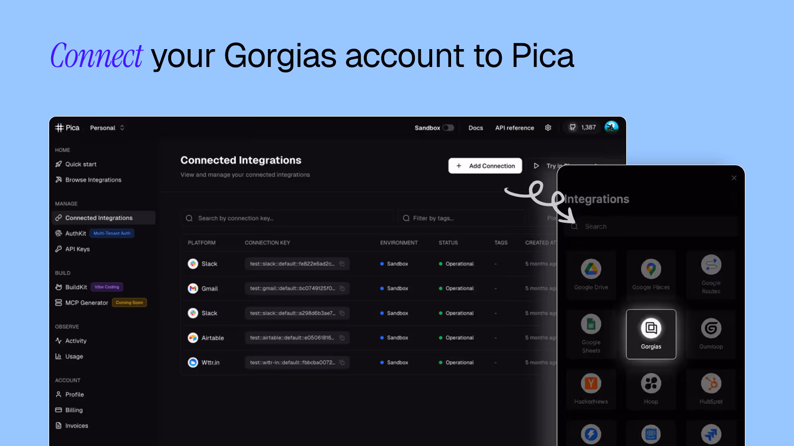 With Pica’s Unified API, Gorgias users can access and manage their data in Pica and use it across 150+ verified integrations for seamless connectivity.