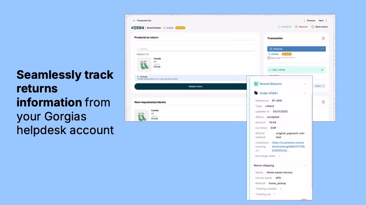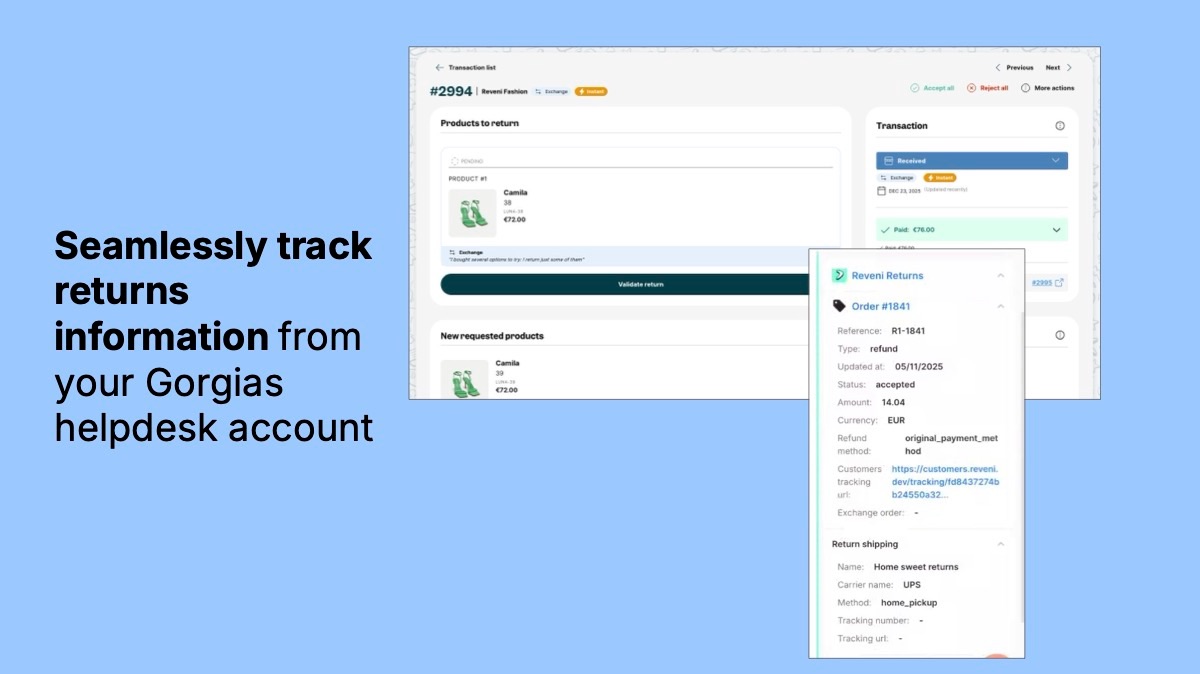 Connecting Reveni with Gorgias allows you to display your customer's returns and exchanges information within your support tickets.