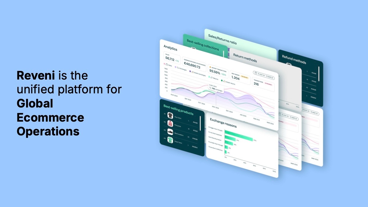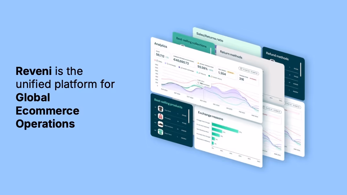 Reveni is the unified platform that centralizes global sales, returns, and logistics in one dashboard, integrating with major ecommerce platforms to optimize purchase and post-purchase flows.
