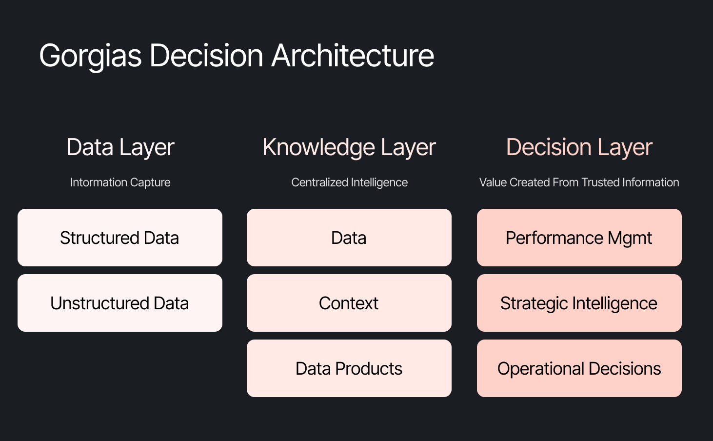 We started somewhere different. Every company is built on four pillars: customers, people, product, and decisions. AI investments tend to place heavy emphasis on the first three. We started with the fourth. Our bet was that if we built everything around the need to make effective decisions first, asking what Gorgias needed to know to operate well, then our AI would become dramatically more powerful.