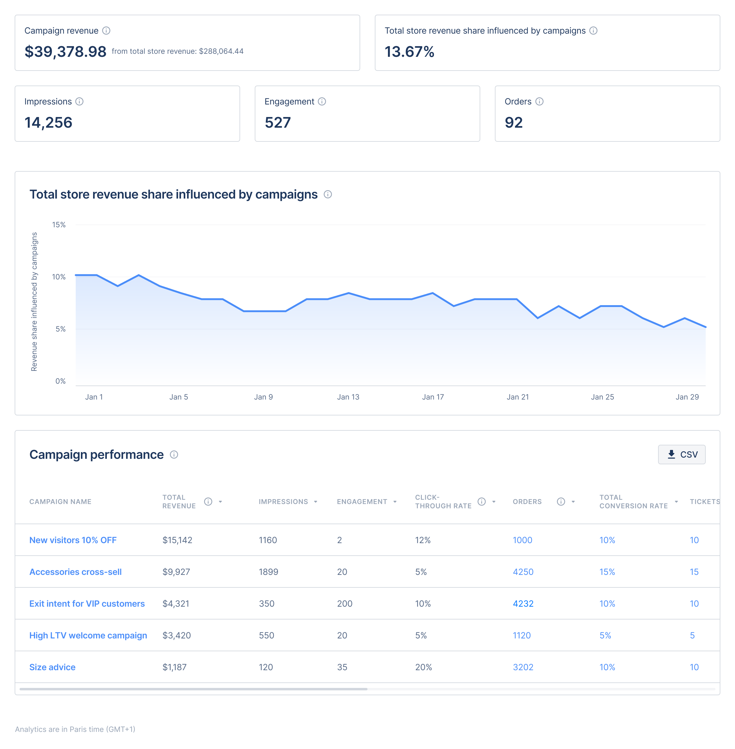 - Revenue generated (overall and by campaign), so you can report on performance and make data-based decisions