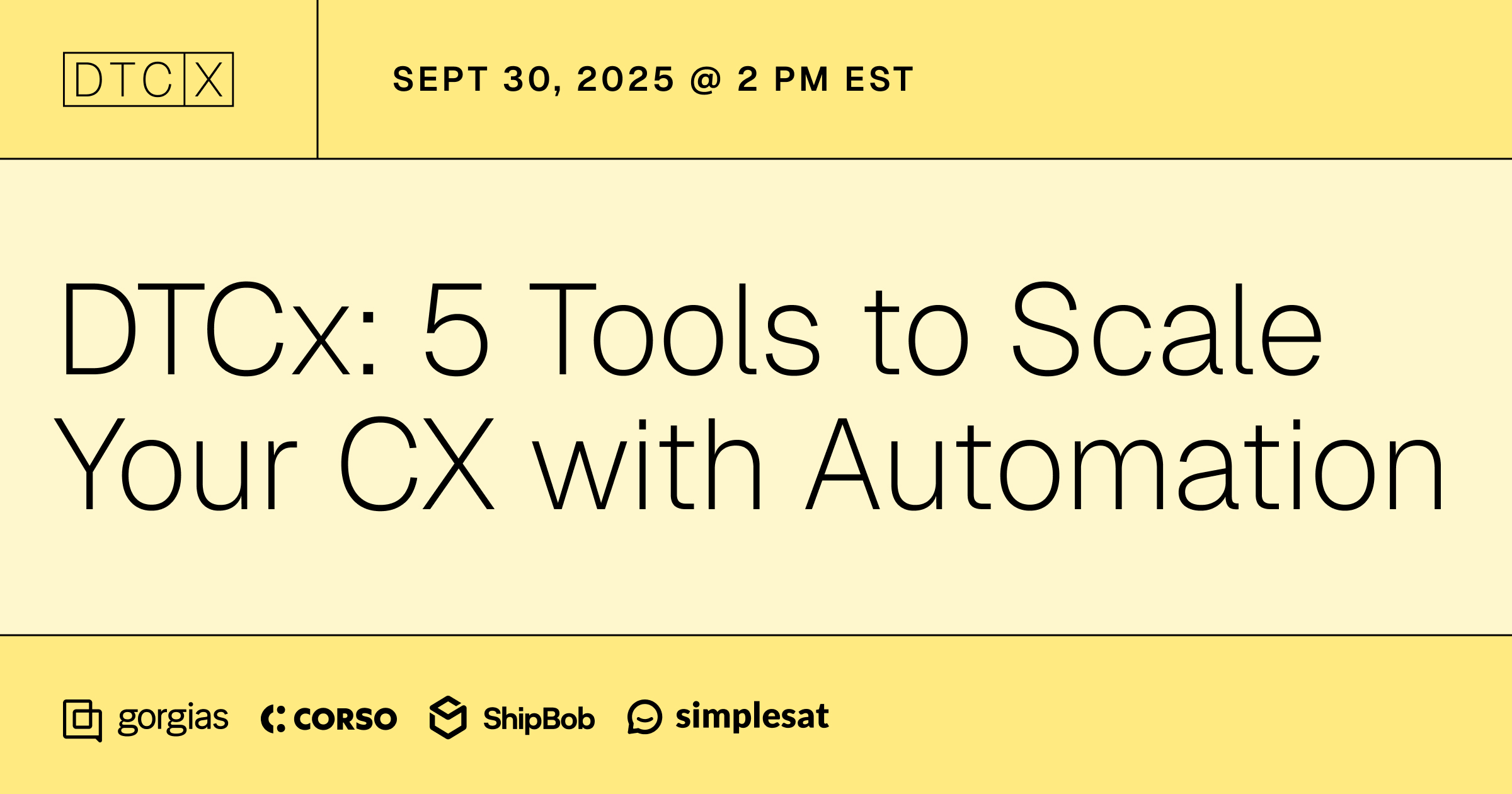 Join us for DTCx: 5 Tools to Scale Your CX with Automation, where we’ll walk you through the top automation strategies and tools that leading brands use to streamline workflows, boost efficiency, and create deeper customer connections at scale. Whether you’re looking to reduce response times, personalize interactions, or free up your team’s time for higher-value tasks, this session will equip you with practical, actionable insights you can implement immediately.
