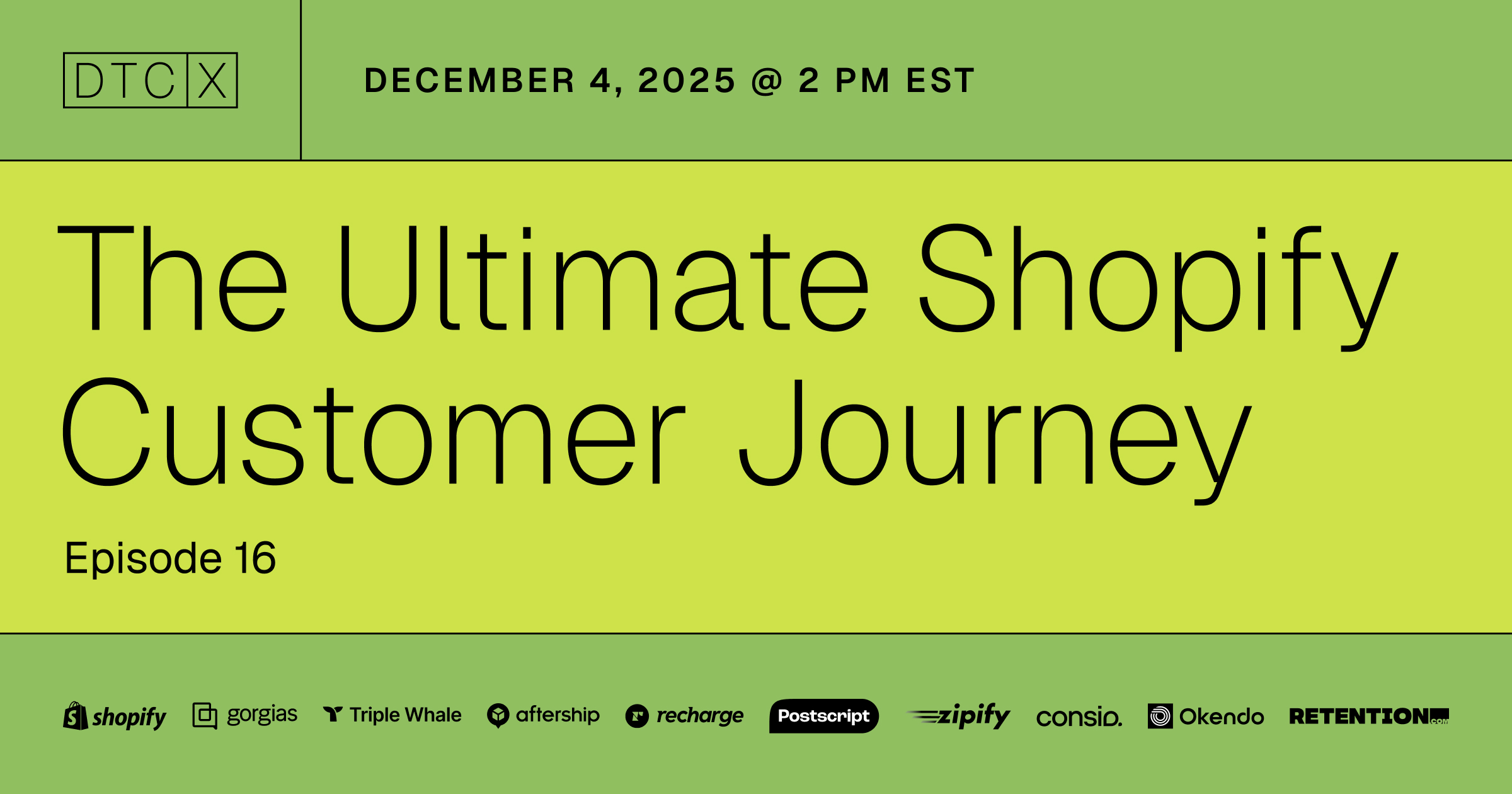 Join DTCx Ultimate Shopify Customer Journey Ep 16 — a global webinar on December 4, 2025. This live worldwide session focuses on optimizing the Shopify customer journey for DTC brands, offering practical insights and best practices to boost acquisition, conversion, and retention.