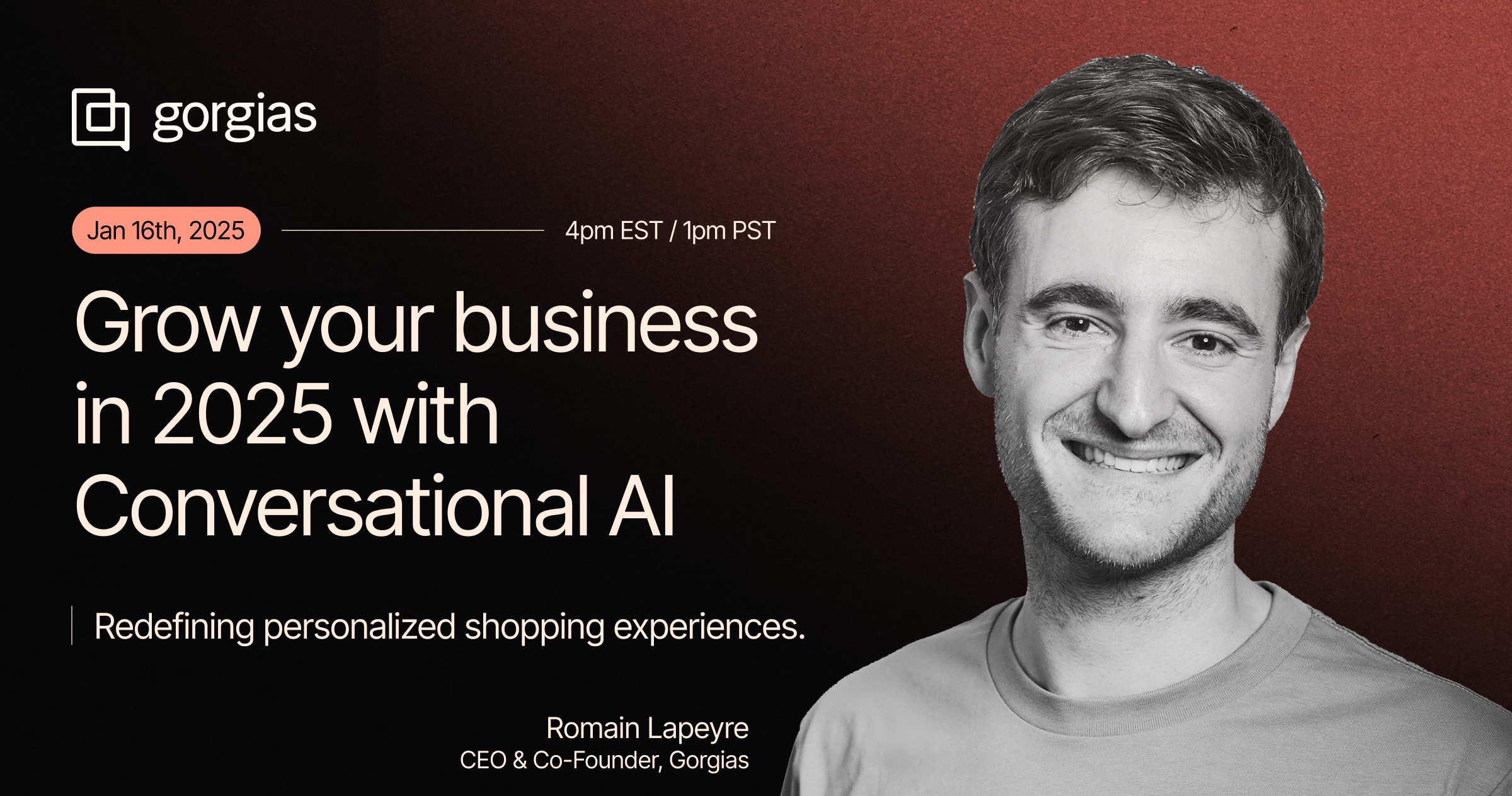 Gorgias is charting a bold new direction in 2025 to help brands drive sales and automate support through 1-to-1 conversations. Join Gorgias CEO Romain Lapeyre, and the teams from Audien Hearing and Glamnetic for this live broadcast where you will learn about: