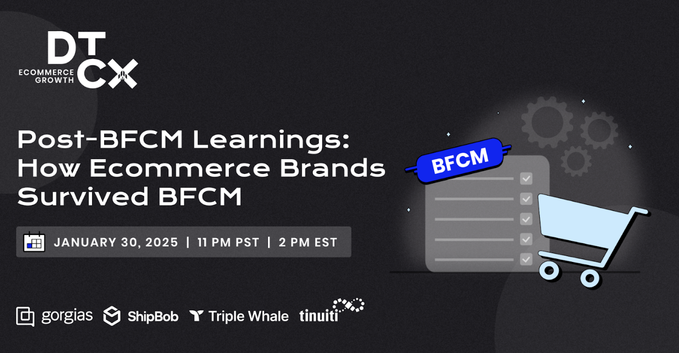 Featuring top leaders and innovators from Gorgias, Shipbob, Tinuiti, and Triple Whale for a game-changing webinar that reveals how leading ecommerce brands not only survived but thrived during the year’s most intense retail event.