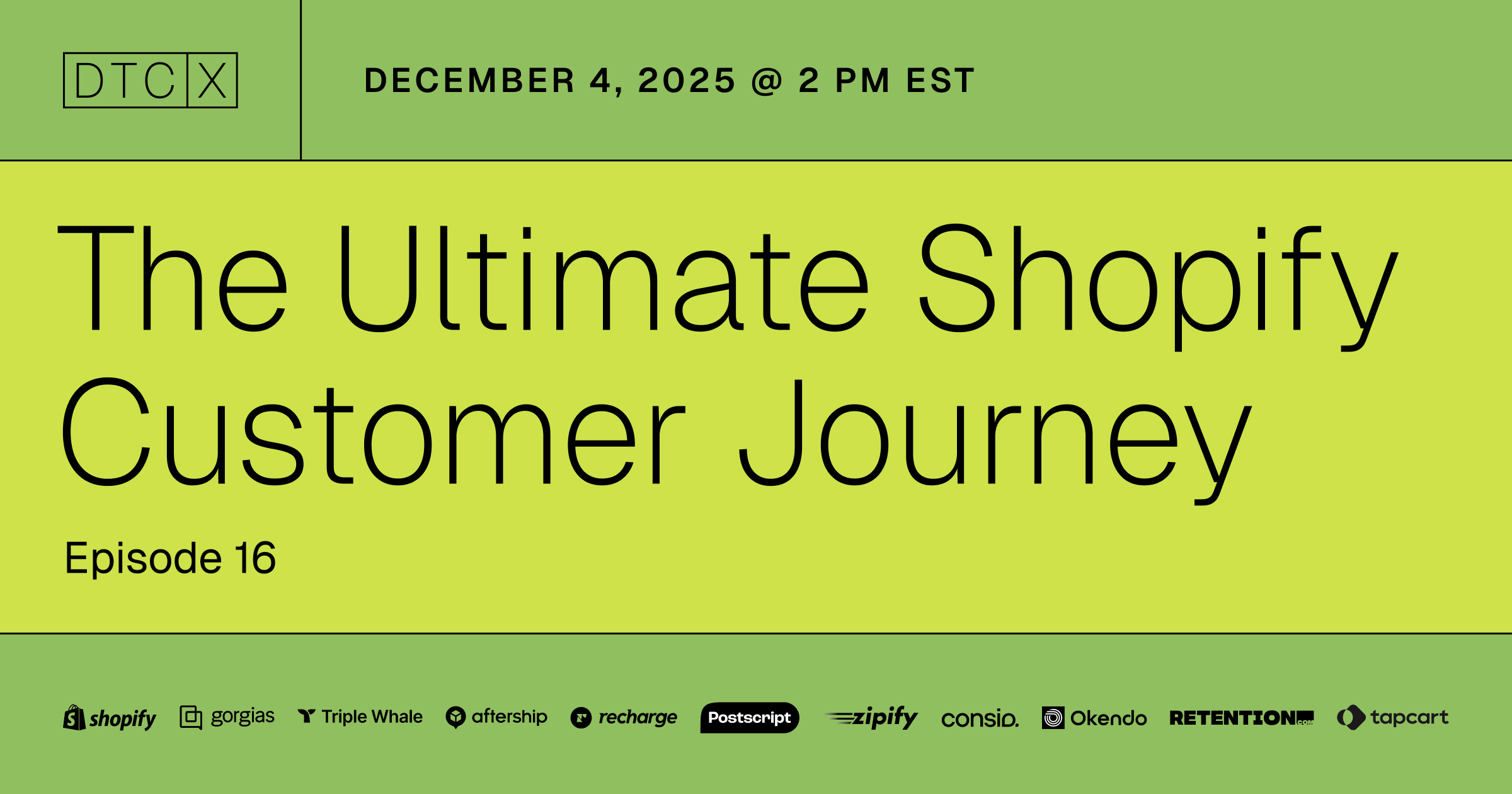 Join DTCx Ultimate Shopify Customer Journey Ep 16 — a global webinar on December 4, 2025. This live worldwide session focuses on optimizing the Shopify customer journey for DTC brands, offering practical insights and best practices to boost acquisition, conversion, and retention.