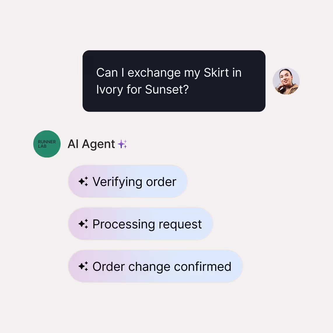 Gorgias AI Agent detects when a shopper is about to make a return and steps in with helpful alternatives, like a different size, color, or style. Instead of losing the purchase, your brand keeps the relationship strong and customers leave knowing that their needs matter.