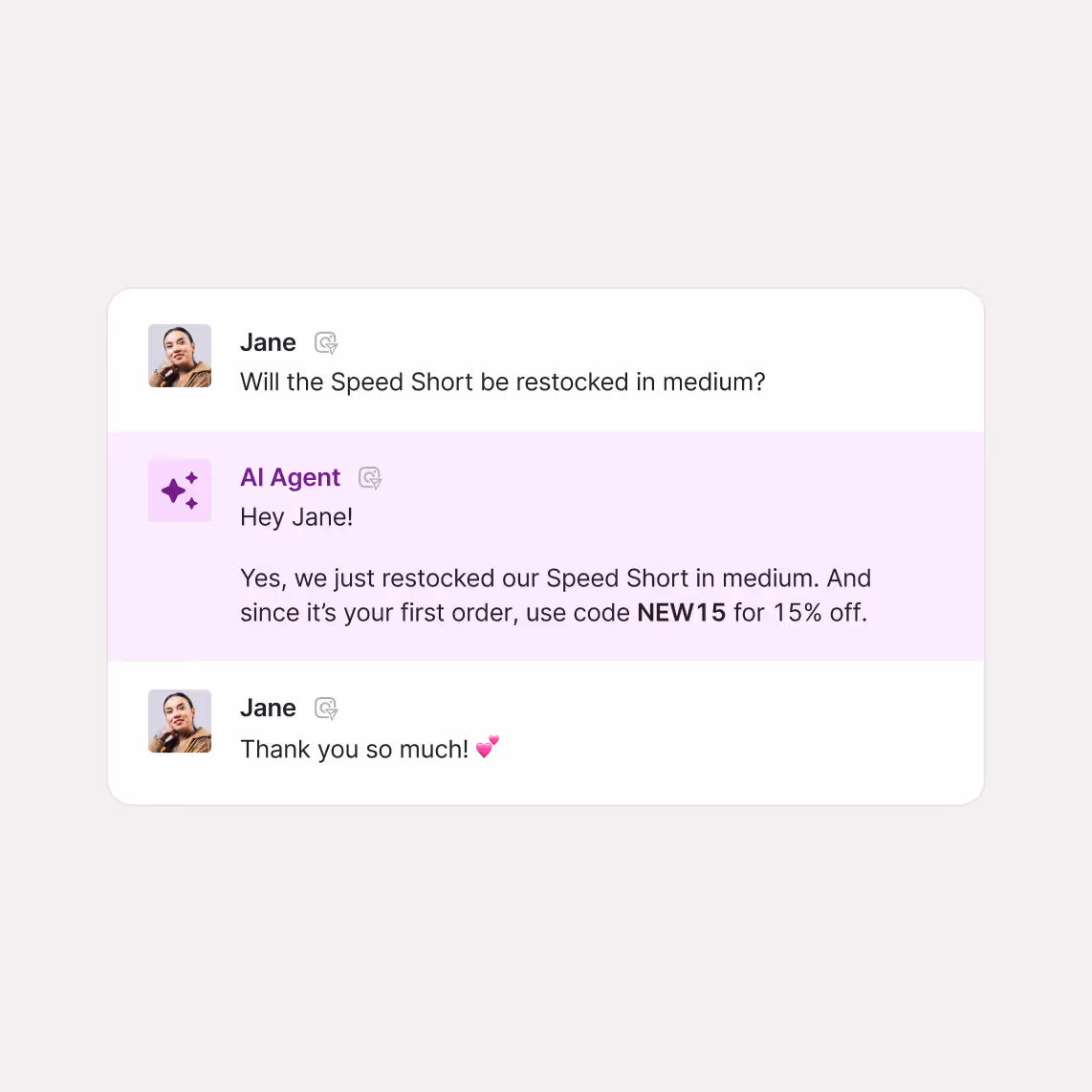 From new collections to holiday sales, product drops can overwhelm your inbox. AI Agent handles the surge with instant answers to sizing, shipping, and stock questions, while Shopping Assistant turns the spike in traffic into upsell opportunities that boost AOV.