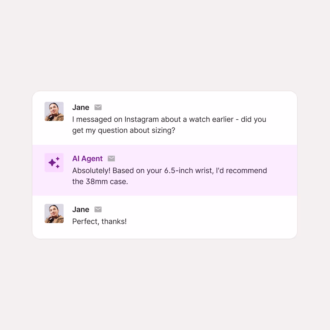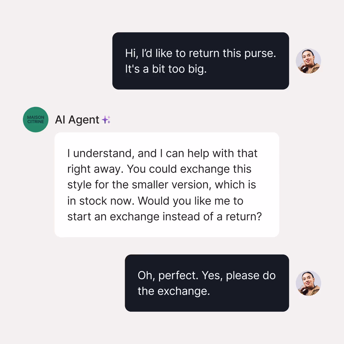 Expensive returns can feel emotional, but Gorgias ensures customers leave the interaction with confidence in your brand, not frustration. AI Agent suggests alternatives, exchanges, or issues credit right away—giving customers reassurance while also protecting LTV.