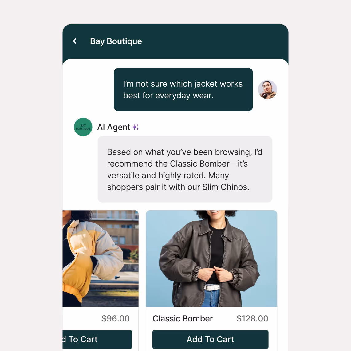 Gorgias Shopping Assistant gives shoppers the clarity they need before stepping into your store. By delivering smart recommendations, upsells, and dynamic discounts, customers will want to keep coming back—whether in-store or online.