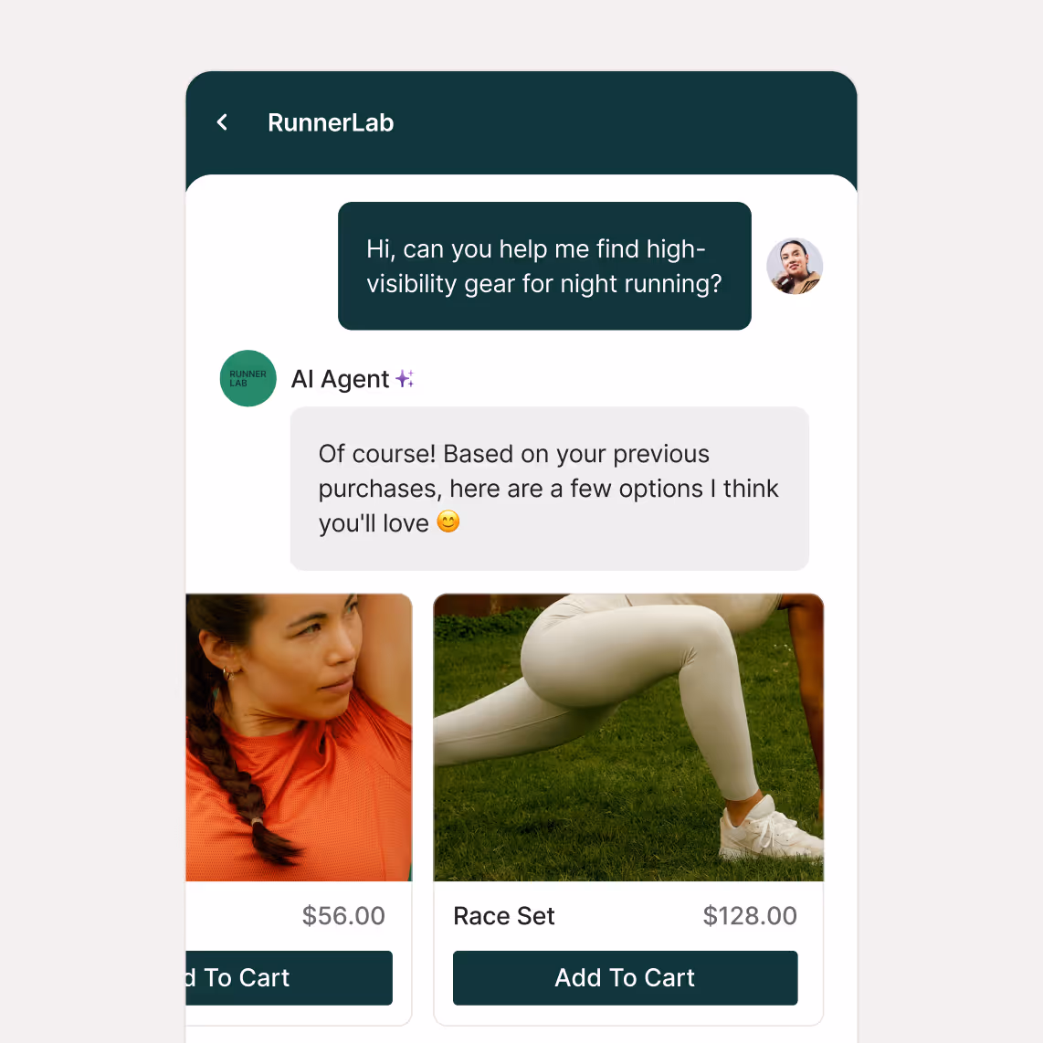 From gear fit to supplement concerns, shoppers get instant, on-brand, and personalized answers. AI Agent mirrors your brand voice in every conversation—delivering a consistent experience across the board.