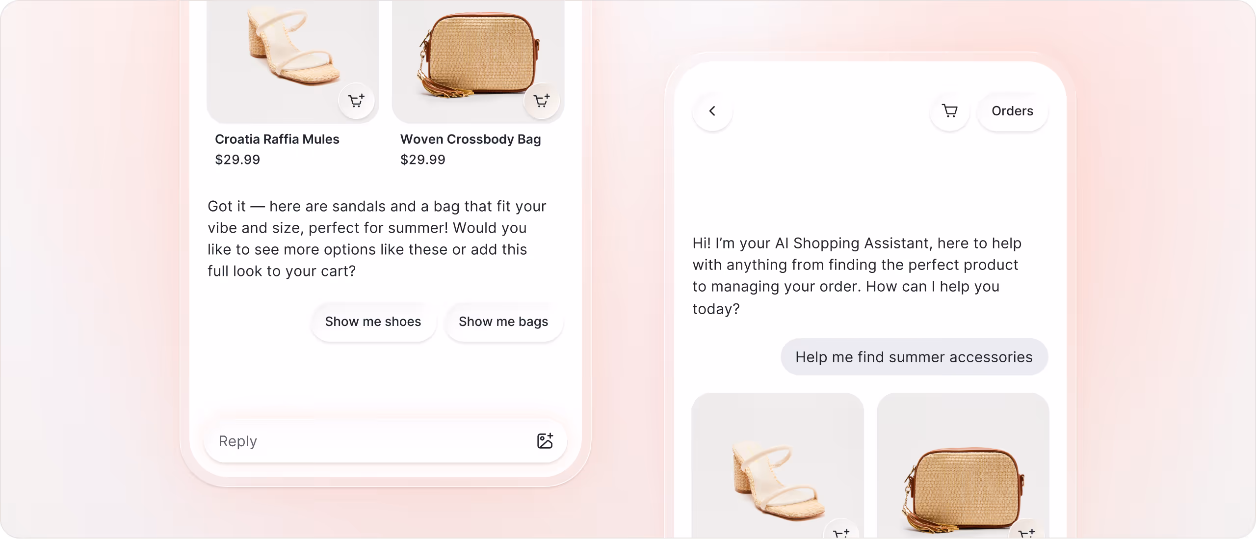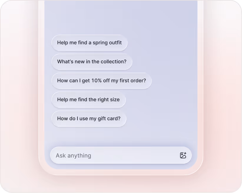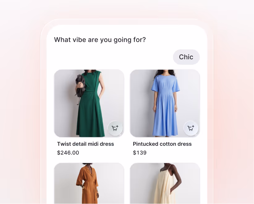 Let customers browse, get personalized recommendations, view product details, and add to cart without leaving the conversation. Chat is now part of the storefront, not a support widget layered on top.