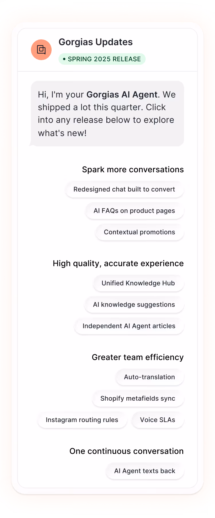 Invite shoppers directly into the conversation with a faster, visual experience built for mobile. Smooth interactions and polished animations create trust and increase engagement.